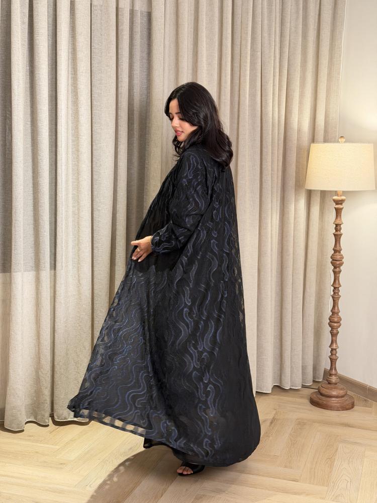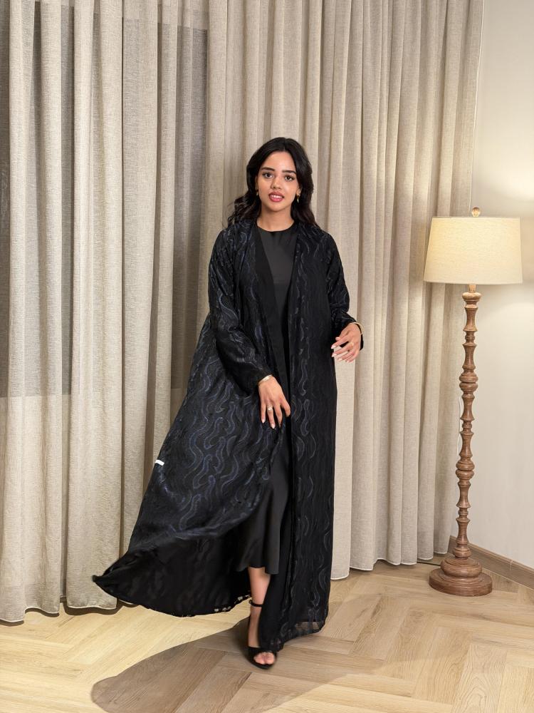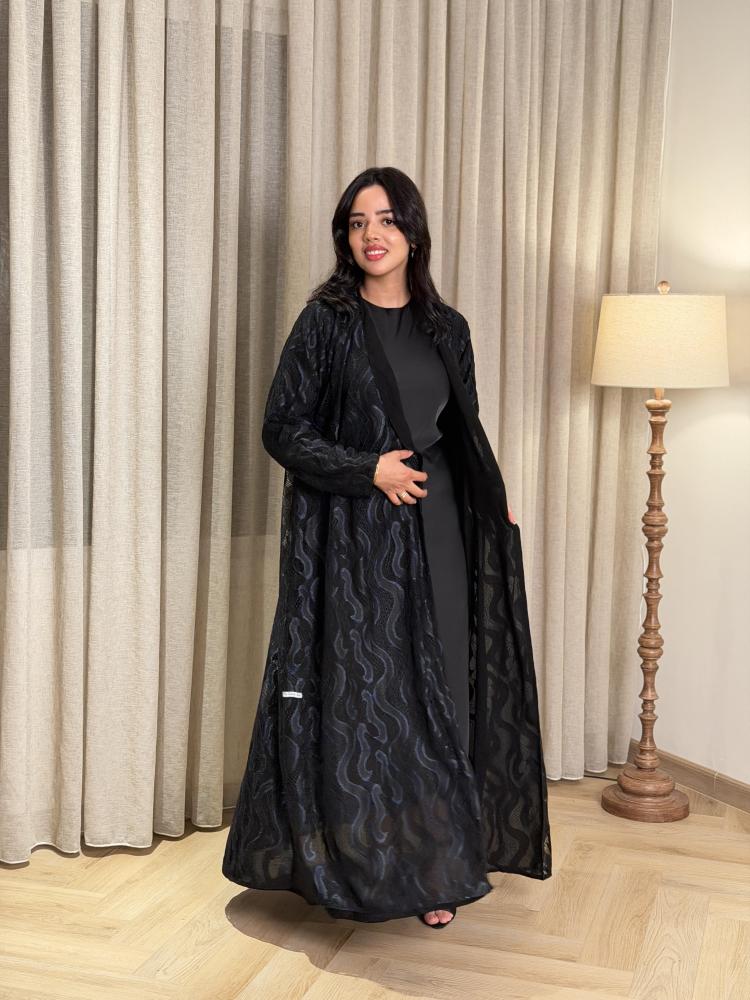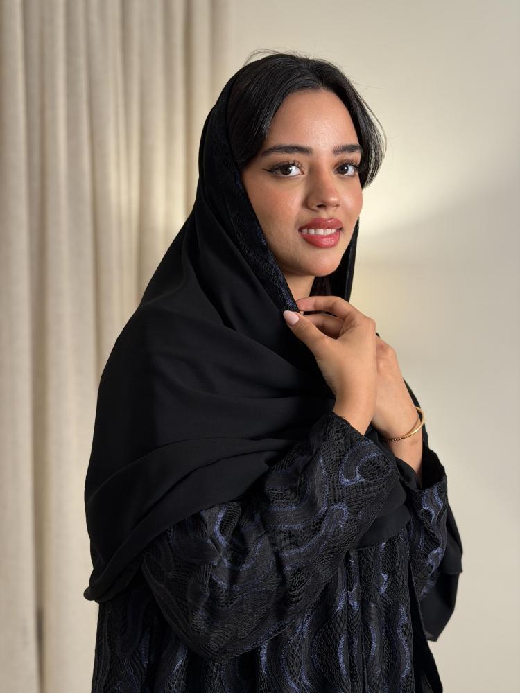 عباية دانتيل كامل | مبطنة بقماش ليزر | طرحة ليزر بطرف كامل | قصة ربع كلوش